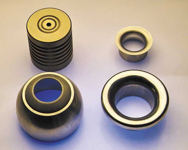 SPINNING TECHNOLOGYの追求、これが、当社のテーマです。 豊富な経験をもとに、職人によるヘラ鉸り加工の技術を駆使し金型製作から加工まで一貫して製造しています。また、世界のトップメーカーである LEIFELDスピニングマシン、M&Mスピニングマシン(国内で当社のみ)をはじめとする一流メーカーの工作機械を揃え、高い精度と生産能力を有しています。更に自社内生産により品質管理を徹底して行ない、お客様から高い評価と信頼をいただいております。